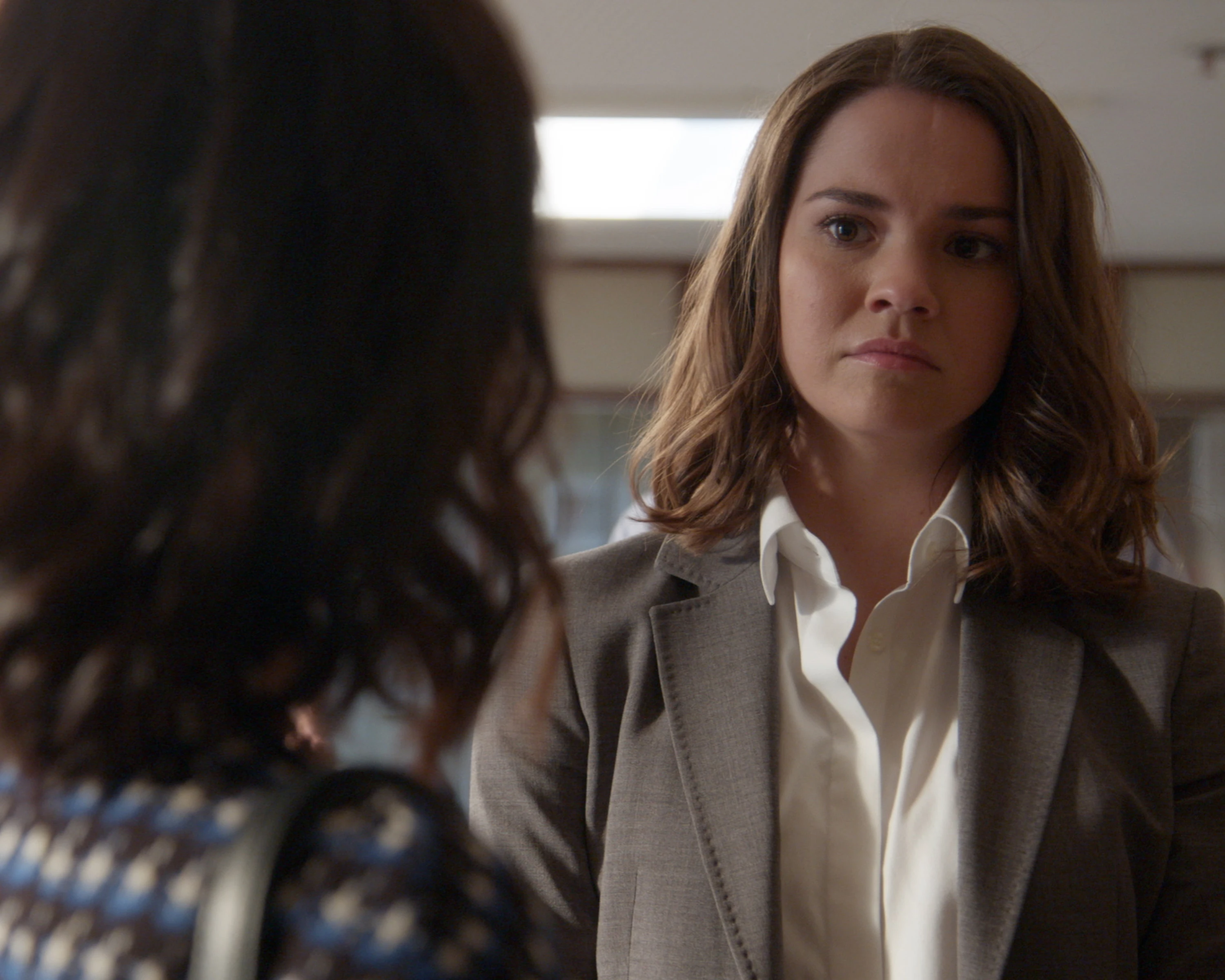 Back at the law office, Kathleen talks to Callie about their next case and Callie gives her an emotional look. Kathleen wonders if she gets a two-week notice. Callie apologizes as this isn't the right job for her, something Kathleen knows as she is a crusader. Callie really wants to work for the ACLU and Kathleen knows the executive director of the ACLU in DC if she's looking to move. She offers to make a call.