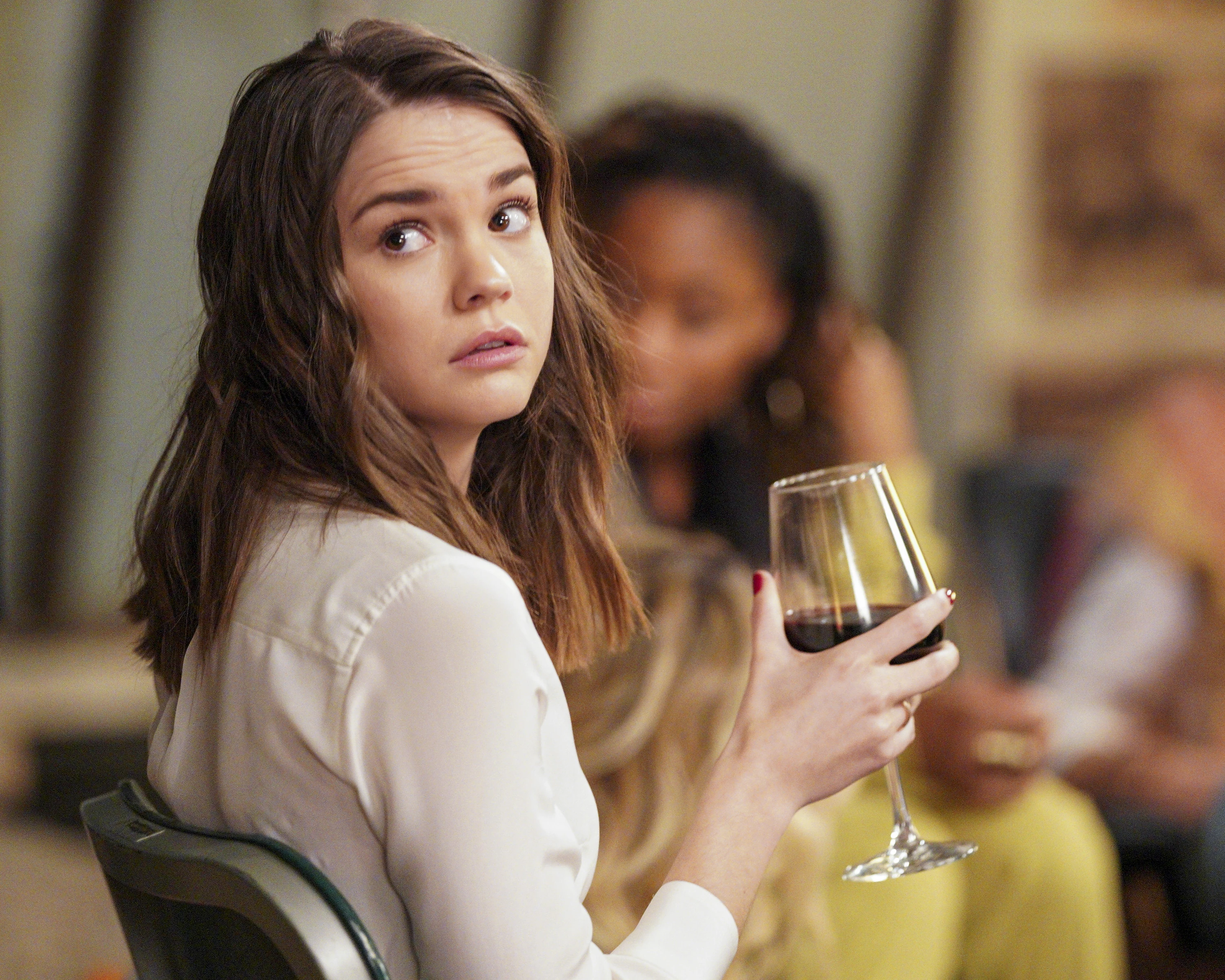 Callie clinks her glass to call everyone together. She is going to try to talk without crying. She thanks them for the going away party. Callie had no idea that she was moving into a communal living space. After sharing a bathroom with four siblings, the thought of sharing one other with a dozen strangers was a nightmare. But she had no idea how lucky she was that her sister tricked her into moving here. When you leave the family that you were born into or adopted into, you go out in the world and make a chosen family of friends. She will never find a better chosen family than them. Callie loves them all so much and thanks them for letting her be part of The Coterie. They clap for her and then Malika turns the music back on and they all dance together happily. Callie and Mariana embrace as they dance, then Callie hugs Malika and Alice. She smiles happily.