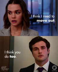 - She moved into his apartment in "Disruptions" and out in Trap Heals.