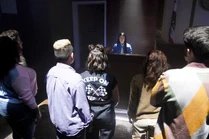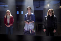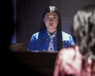 An empty courtroom. The main characters take turns on the stand while those closest to them ask them harsh questions. Characters from across the season reappear to call them imposters. Kelly finds them all guilty as charged.