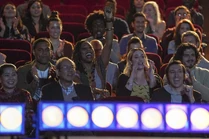 Alice performs her skit in honor of her mother and David tells their mother the skit is her and she frowns then realizes she is funny. Alice sees her family laughing.