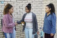 Daphne tells Callie to hurry with her chore, the van will be picking them up soon. Daphne walks away, so Callie retrieves a phone she’s been hiding under the house. Later Daphne finds Callie just before Rita and saves Callie from getting caught with Brandon. Daphne tells Callie things are even between them now.