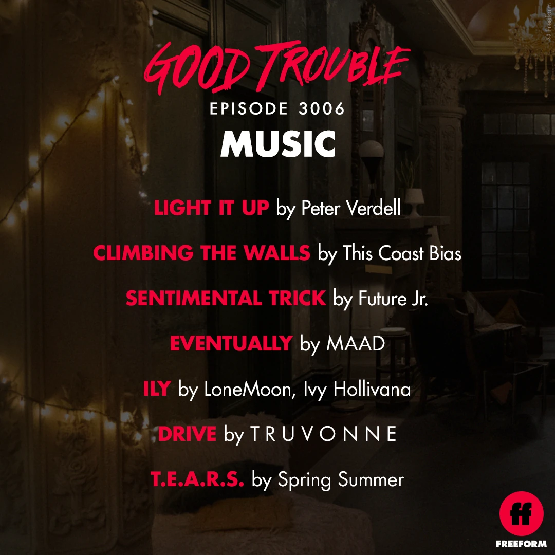 - A text conversation between Callie and Stef was released via the Good Trouble social media accounts. It featured Callie and Stef being kept awake by snoring, Callie by Rachel and Stef by Ka'maya.[2]