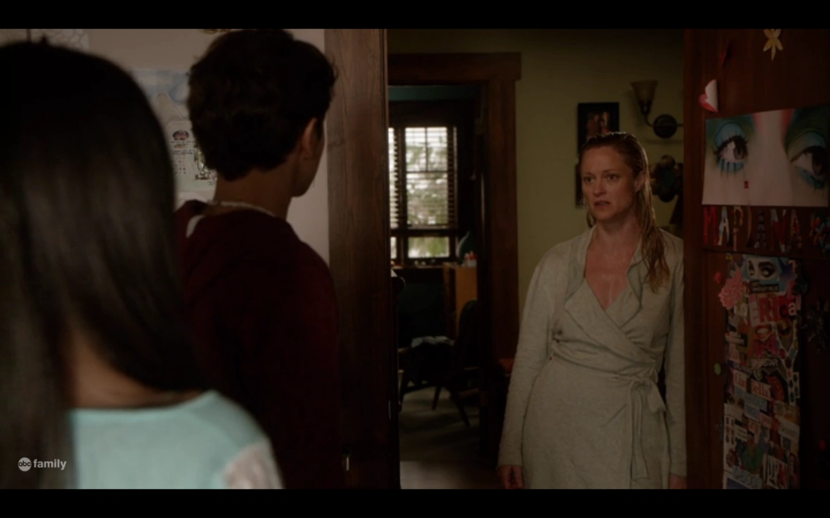 Stef and Lena hide in the bathroom. Lena worries about them being apart for so long, with Stef teasingly saying they should have lots of sex first as they kiss. Lena worries about their kids being quitters; Callie quitting two jobs and a relationship, Mariana quitting her job, and Brandon quitting his internship to go with Eliza. A knock on the door reveals Mariana, who is happy for the break. Lena asks why she didn’t tell them about the supremacists, but Mariana just didn’t want to upset them. Stef assures her that it’s okay and asks what happens. She explains that the men asked if she was from brown lives matter and told her to go back to Mexico. She tries to claim it’s not a big deal, and Lena comforts Mariana as Stef assures her that she was right to quit. Mariana tries to stand up for Evan just as Callie enters. Lena asks how it is seeing Jamie to which Callie covers that it’s fine. Stef asks why they broke up.
