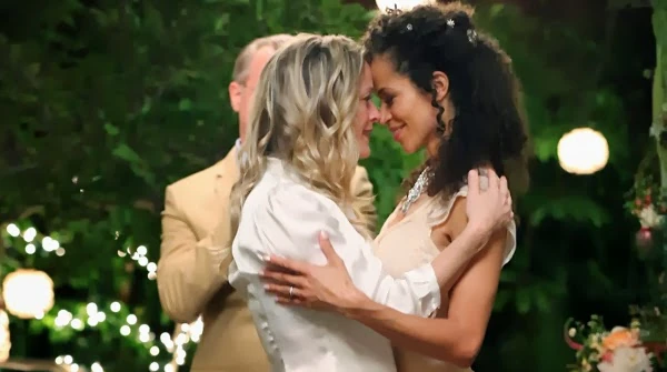 Stef, Lena, and Corey sit outside with him introducing Ka’maya to the moms. Ka’maya shows them her finger which has a purple band-aid, and Stef tells her that her favorite color is purple too. Lena compliments Ka’maya’s pigtails, and the girl returns the compliment, commenting on Lena’s big hair. Stef laughs that it gets bigger every day and the moms share a kiss.